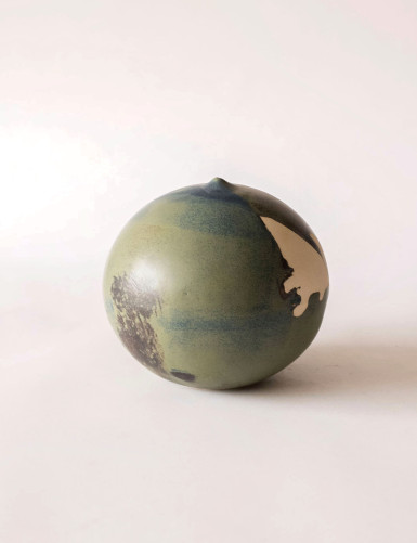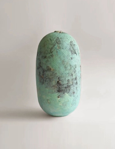 SARDINIA. Distressed minimalist ceramic sculptural vessel in greenbiomimetic-art