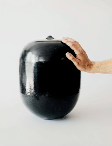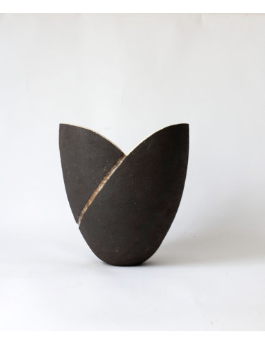 TAMAYORI-HIME (玉依姫). Large modern minimalist black sculptural vase of contemporary art with Japanese linesveora
