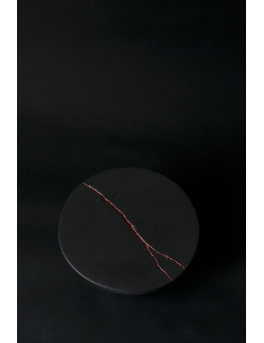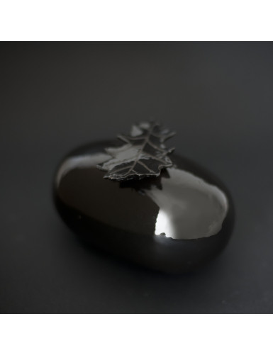 VEGETATION I. Decorative black ceramic with plant prints, modern circular sculpture, Biophilic artinicio