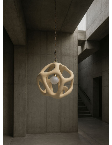 Large beige spherical sculptural lamp with a modern contemporary designinicio
