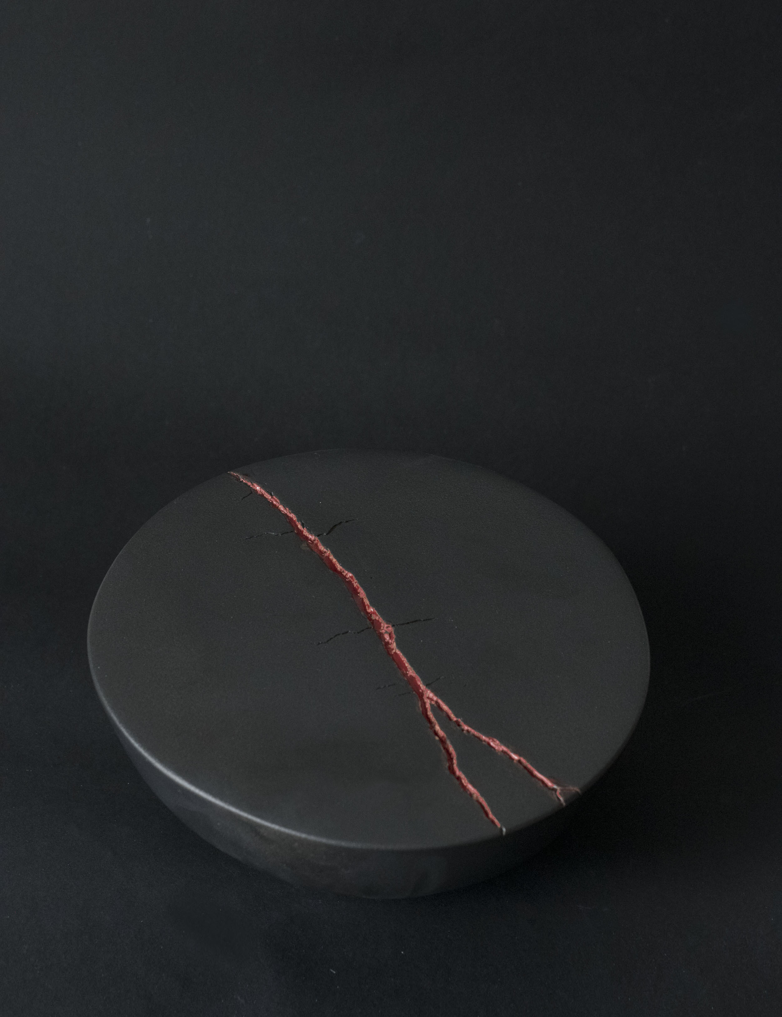 LAVE FLOYD. Black and Red Half Sphere Decorative Sculptureabstract-forms