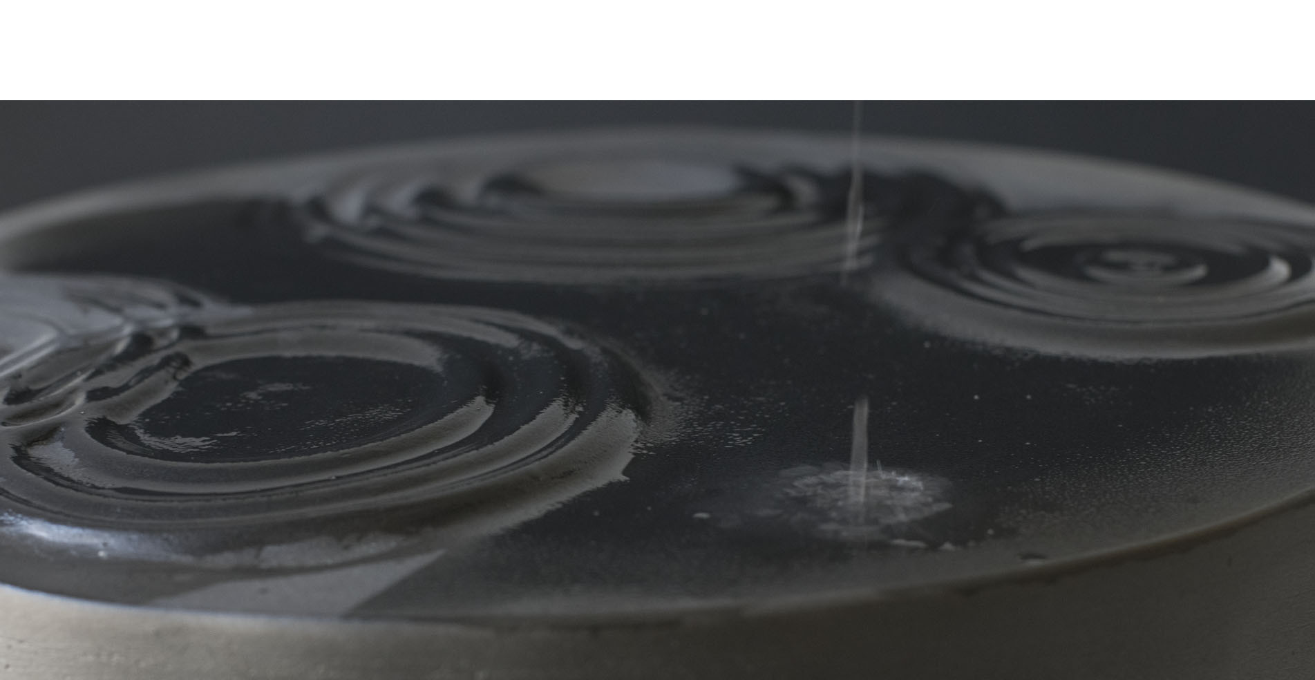 RAINDROP CONTAINED IN A CARVED ROCK. Contemporary abstract sculpture, eco-art, minimal ceramic art, sophisticated artbiomimetic-art