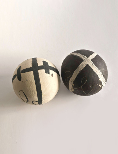 Modern, abstract, and materially expressive, hand-painted with oxides.