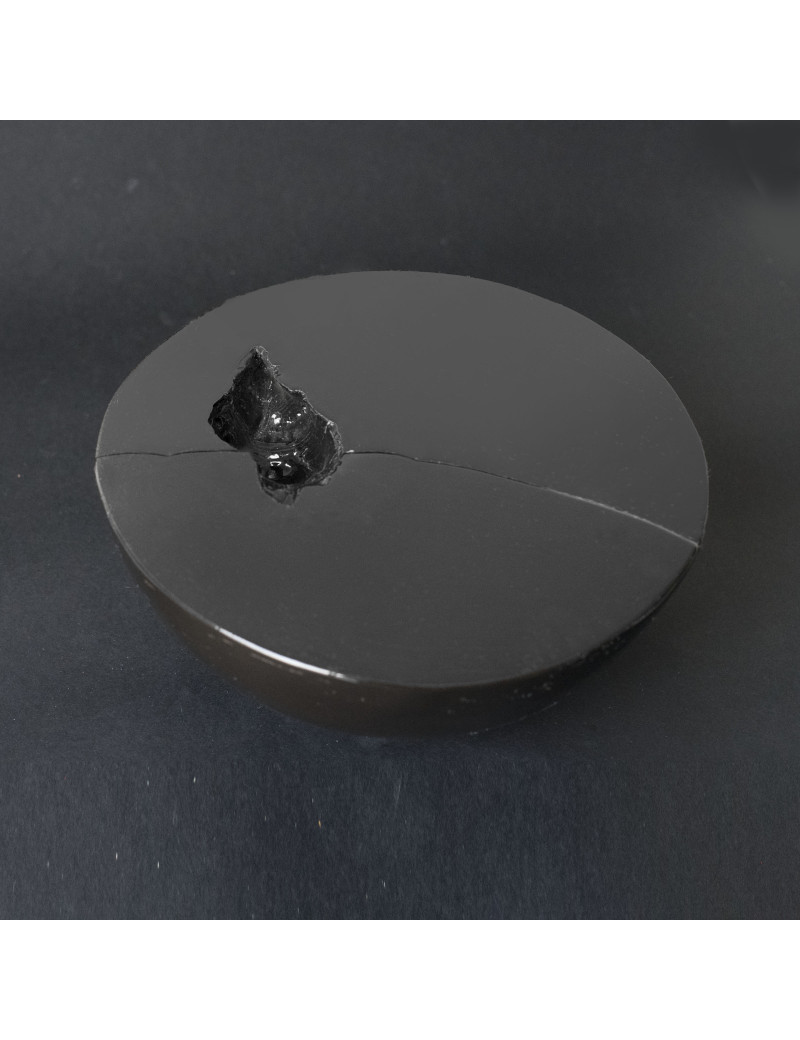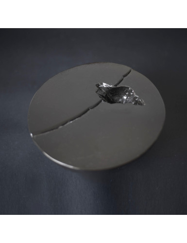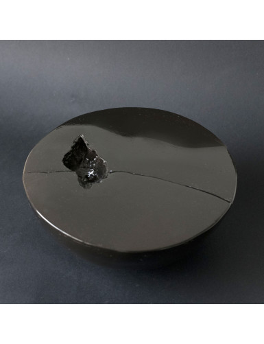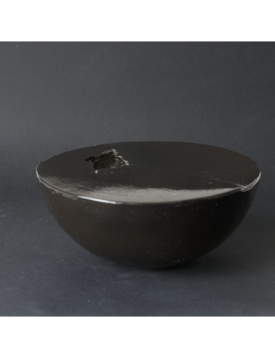 This minimalist piece, influenced by eco-art and biophilia, evokes the inverted shape of a seashell washed by waves on the shore. Finished in matte or glossy black, its hollow center can hold a small amount of water, suggesting the subtle contact with the waves and highlighting its marine origins.