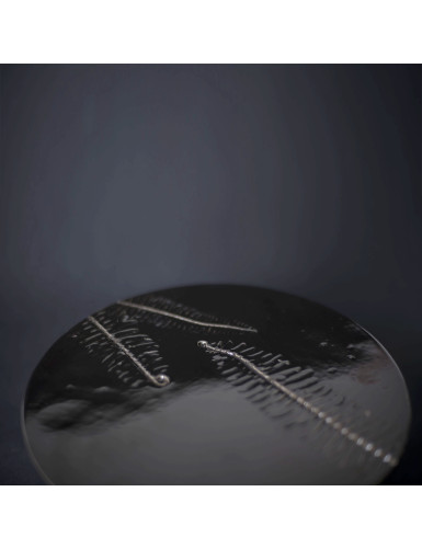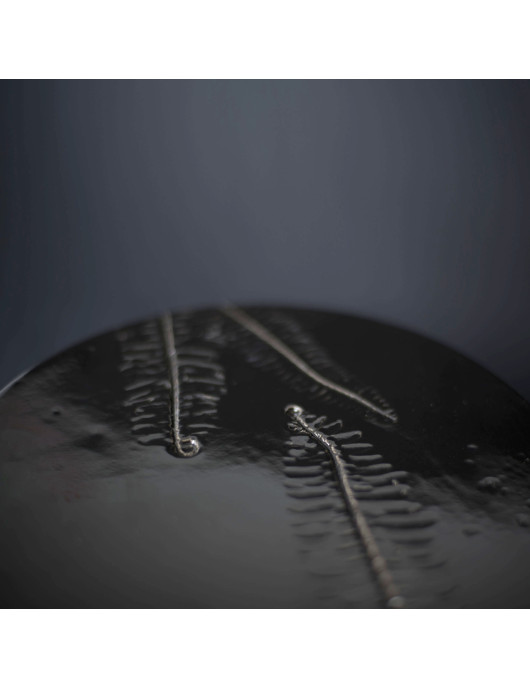 VEGETATION I showcases the beauty of flora through pressed fern leaves on a circular black ceramic surface (matte or glossy). Blending Botanical Art and Eco-Art, this sculpture celebrates the dialogue between organic forms and minimal aesthetics.