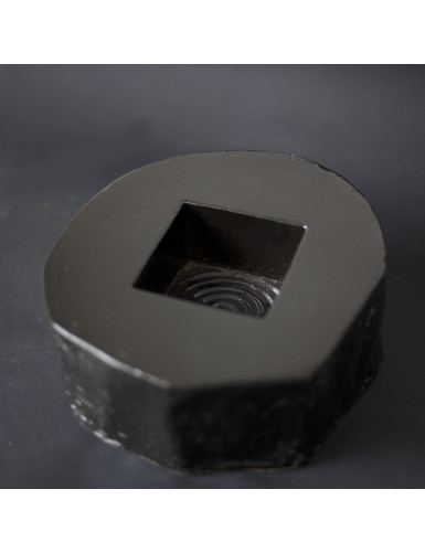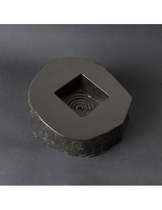 The sculpture represents a raindrop at the moment of its impact, contained in a cavity of a carved rock, a perfect contrast between the solidity of the stone and the delicacy of the water. Inspired by Eco-Art and Biophilia movements, it aims to highlight the fragility of this natural resource and the essential balance between nature and our responsibility towards it.