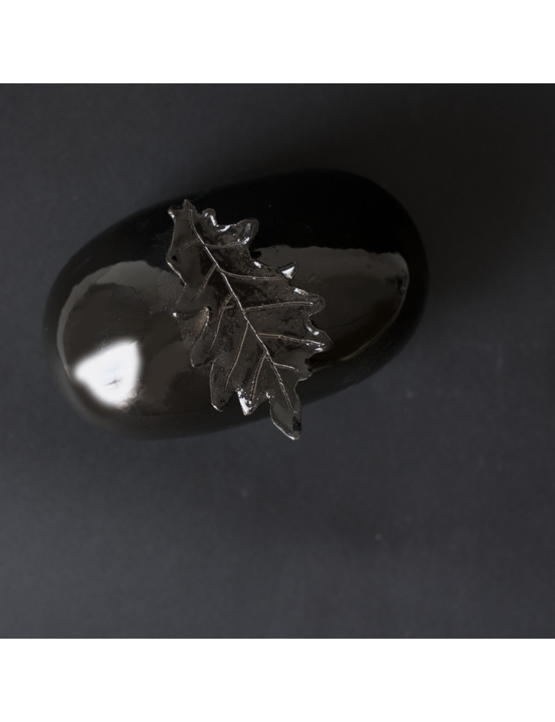 In this piece, a polished stone and an oak leaf are united in ceramic (matte or glossy) to reflect nature’s harmony. Tied to Environmental Art and Biophilia, it illustrates how opposing forces achieve balance.