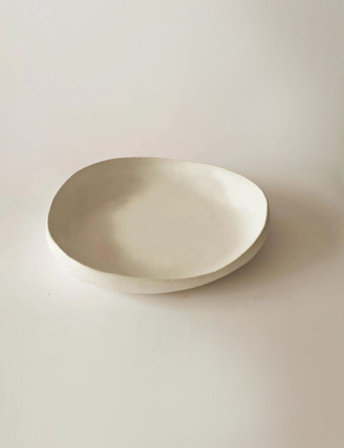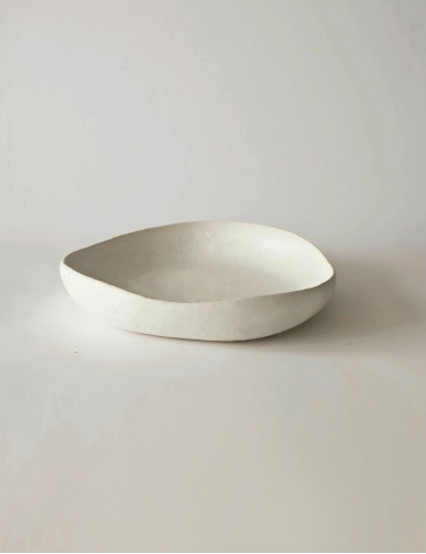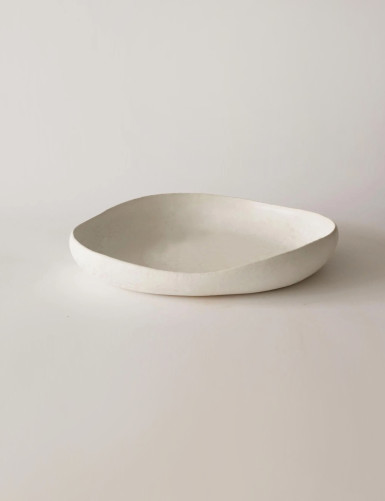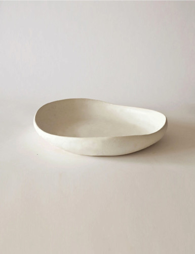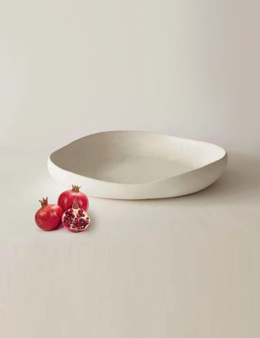 Artistic sculptural fruit bowl for dining table, for decorating the kitchen or living room. Artistic decorative container for modern minimalist or boho decoration in white.